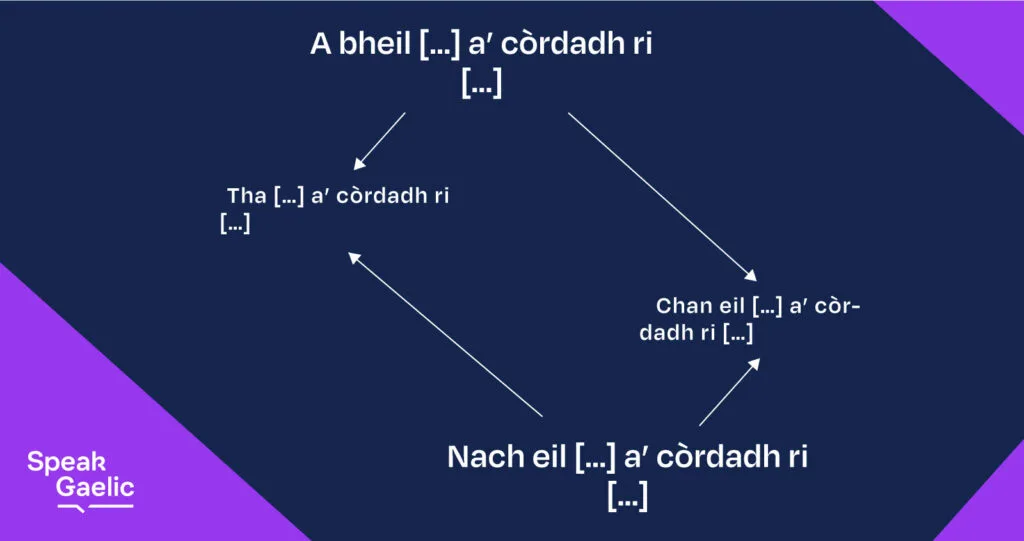 Còrd means to agree, to accord, and we use it with the preposition ri to ask if someone enjoys something (if it ‘agreed with them’).
