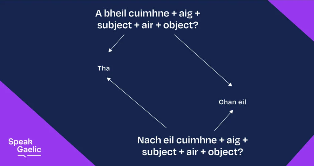 Questions and answers for cuimhne + aig + air